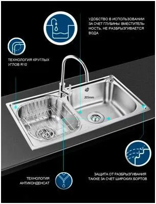 Перелив. Все мойки снабжены переливом, что гарантирует безопасность в эксплуатации