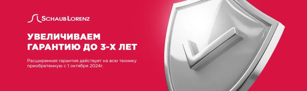 Мы рады сообщить вам о важном обновлении в политике гарантии на бытовую технику Schaub Lorenz. С 1 октября 2024 года увеличен срок гарантии на всю продукцию до 3 лет!