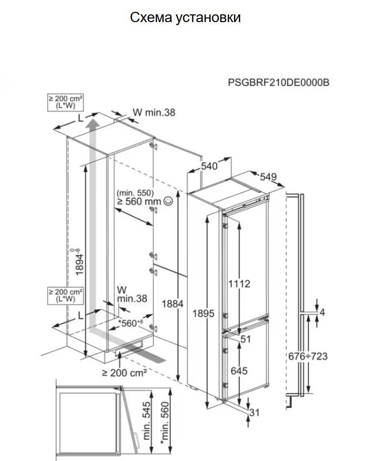 холодильник-морозильник встраиваемый, 276 л, класс энергопотребления E, No Frost, 54,6x54,9х188,4 см
