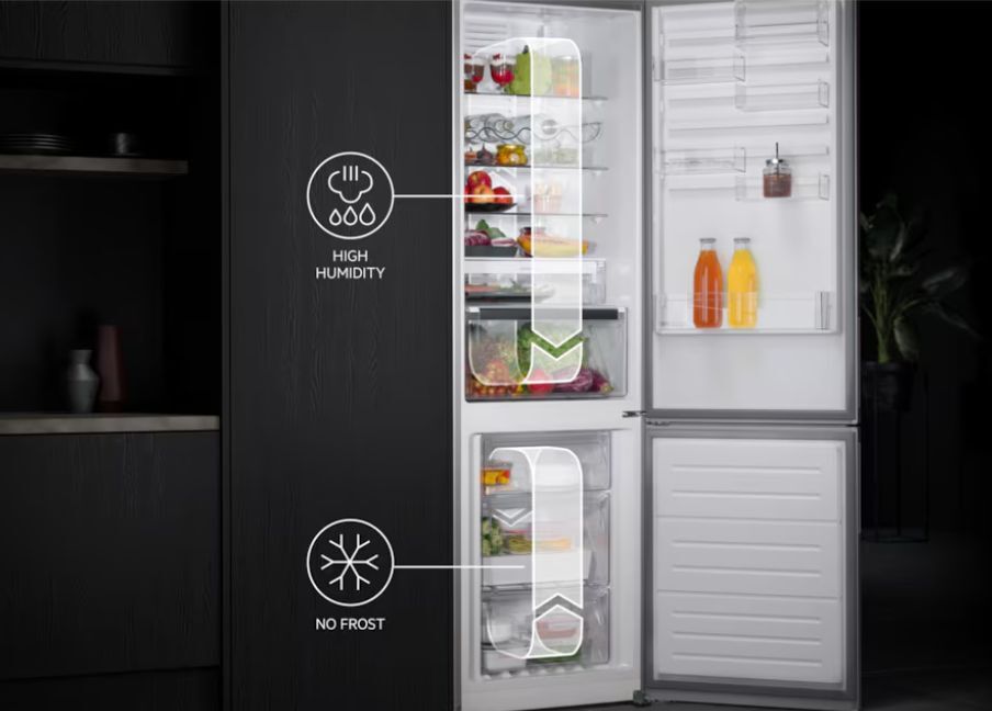 В зоне свежести температура держится на уровне 0°С, так продукты дольше остаются свежими. Подходит для свежего мяса, рыбы, фруктов, овощей.