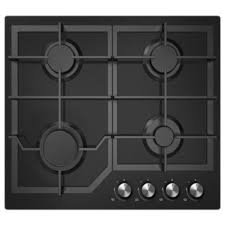 поверхность газовая, 60 см, газ на стекле, 4 конфорки, решетки чугунные, черный