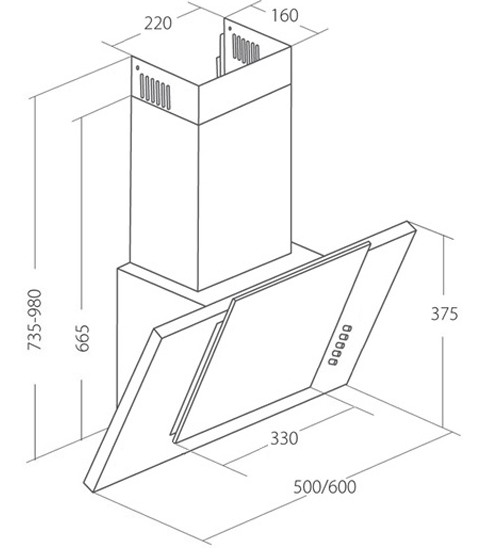 вытяжка наклонная, 60 см, 1100 м3/ч, черный