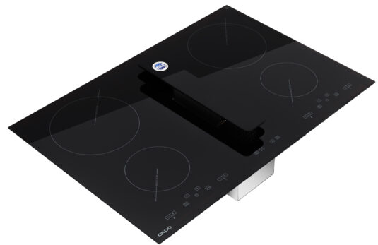 поверхность варочная стеклокерамическая индукционная с встроенной вытяжкой, 76 см, черный