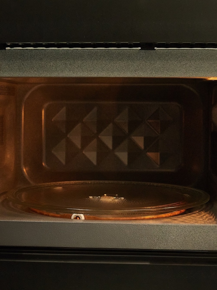 Поворотный стол — это крутящееся блюдо в центре. Его отсутствие позволяет поместить в камеру посуду большого размера или неправильной формы.