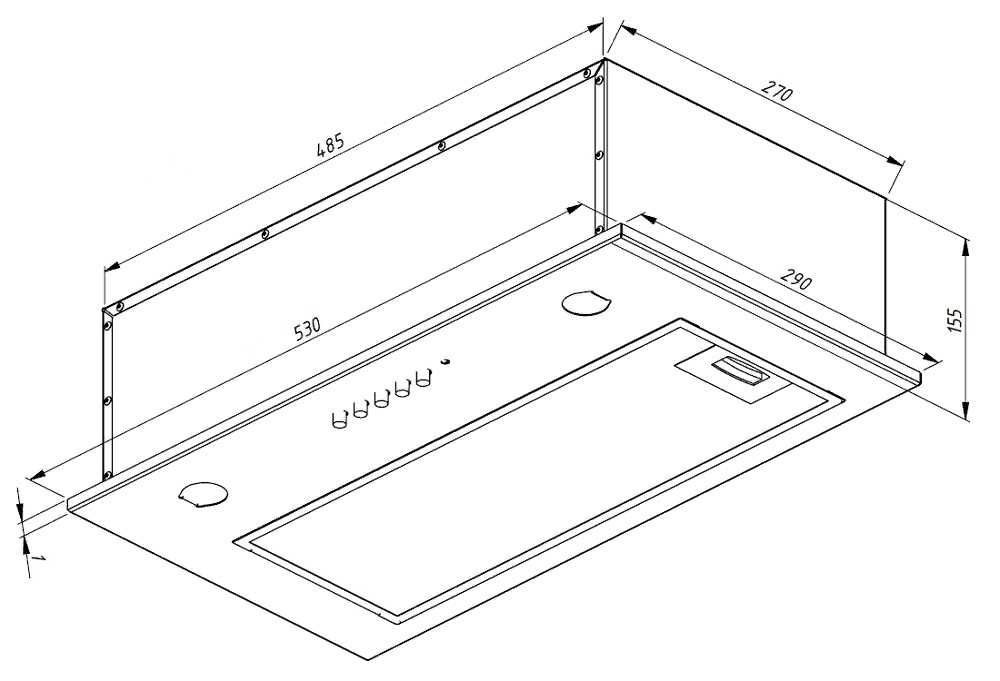 вытяжка встраиваемая в подвесной шкаф, 53 см, 1080 м3/ч, нержавеющая сталь