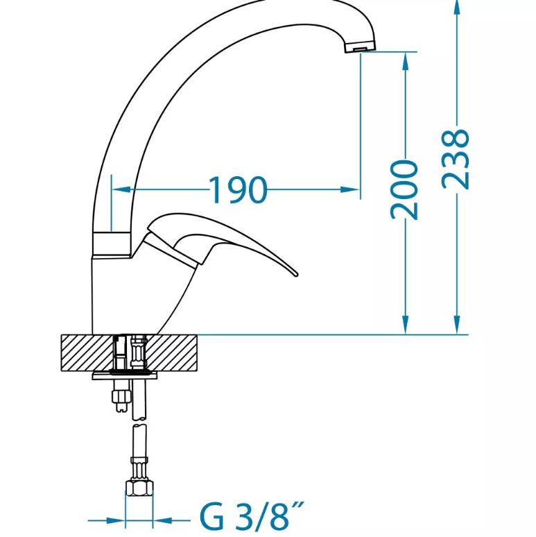 смеситель для кухни, латунь, высокий поворотный излив, хром