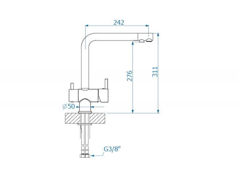 смеситель для кухни, латунь, дополнительный излив для фильтрованной воды, бежевый