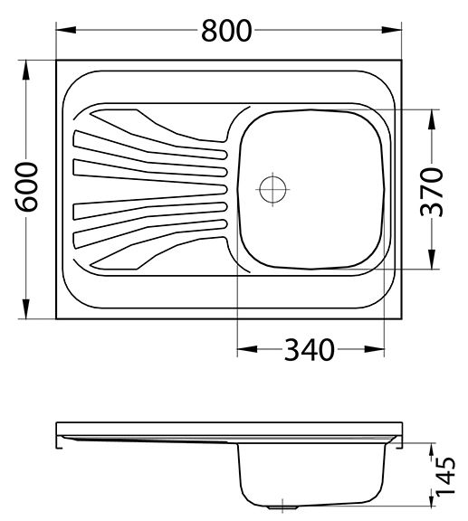 мойка, нержавеющая сталь, 800х600 мм, нержавеющая сталь, правая