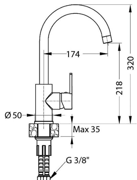 ALVEUS GENESIS TONIA G81 CONCRETE, смеситель, гранит, серый Смеситель «под гранит»