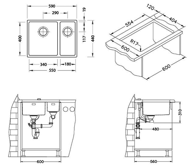 Определяет расположение крыла мойки. Выбирая вариант исполнения мойки, нужно учитывать особенности кухонного гарнитура.