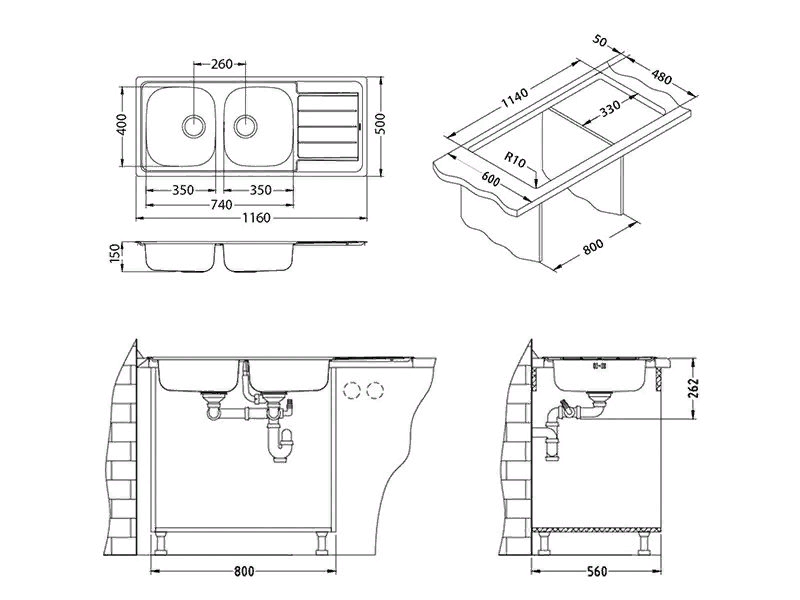 Наличие и расположение крыла кухонной мойки — слева, справа или с обеих сторон. Крыло оборачиваемой мойки можно расположить с любой стороны.