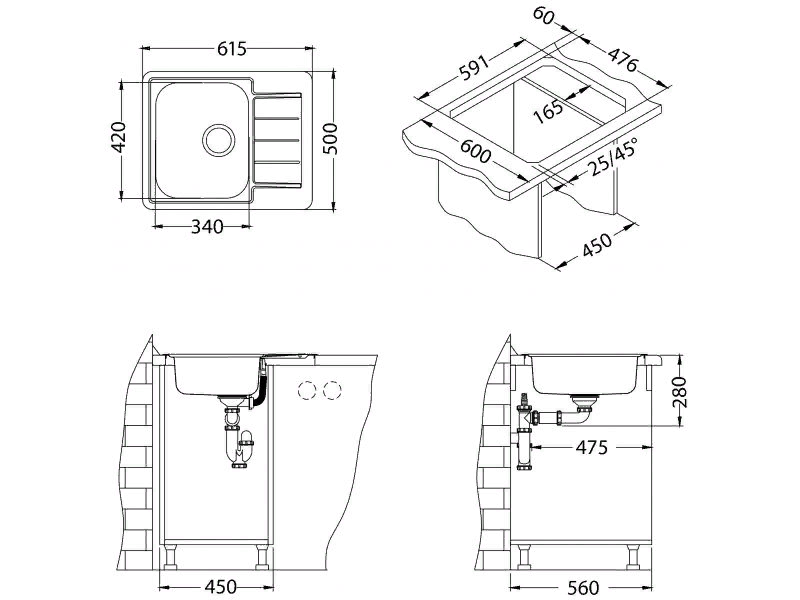 мойка, нержавеющая сталь, 615х500 мм, нержавеющая сталь