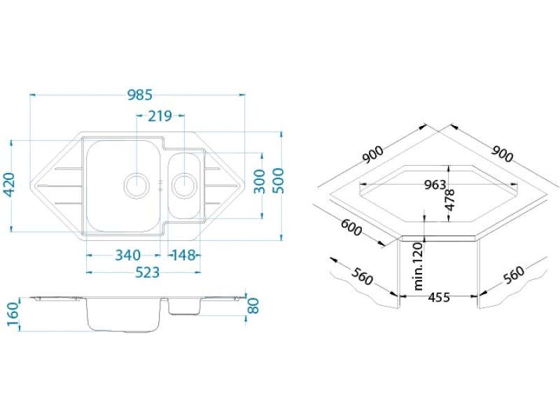 Определяет расположение крыла мойки. Выбирая вариант исполнения мойки, нужно учитывать особенности кухонного гарнитура.