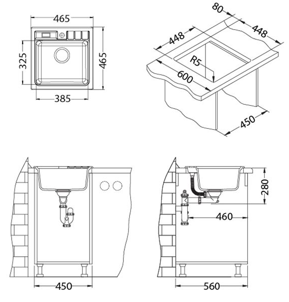 Определяет расположение крыла мойки. Выбирая вариант исполнения мойки, нужно учитывать особенности кухонного гарнитура.