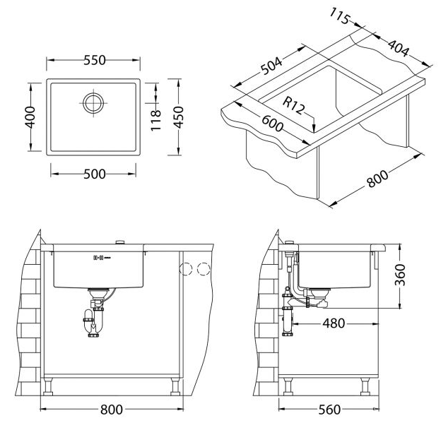 Расстояние от дна до верхней кромки чаши мойки. Оптимальная глубина — 15-18 см. Чем глубже мойка, тем меньше брызг попадет наружу.