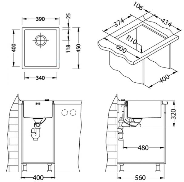 Определяет расположение крыла мойки. Выбирая вариант исполнения мойки, нужно учитывать особенности кухонного гарнитура.