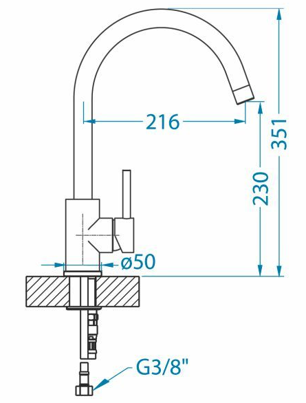 смеситель для кухни, нержавеющая сталь, высокий поворотный излив, хром