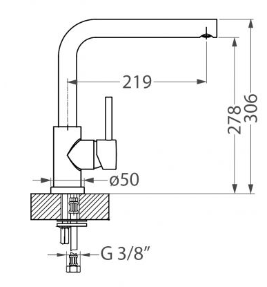 смеситель для кухни, нержавеющая сталь, высокий поворотный излив, карбон