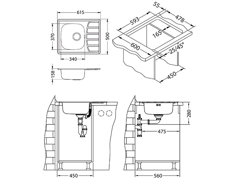 Определяет расположение крыла мойки. Выбирая вариант исполнения мойки, нужно учитывать особенности кухонного гарнитура.
