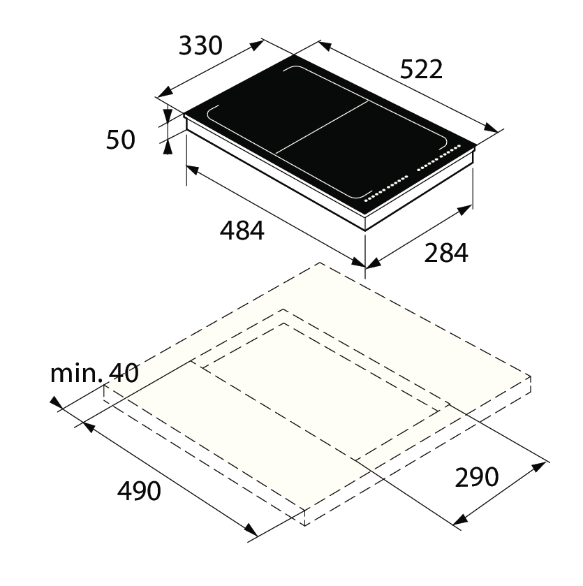 поверхность варочная стеклокерамическая индукционная, 33 см, черный