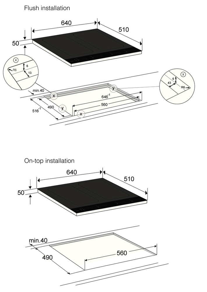 Характер огранки фаски на внешней стороне варочной панели. Металлические рамки предотвращают забивание монтажных швов крошками и пылью.