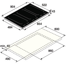 Характер огранки фаски на внешней стороне варочной панели. Металлические рамки предотвращают забивание монтажных швов крошками и пылью.