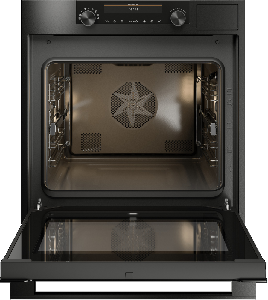шкаф духовой электрический с функцией пароварки, 60 см, черная сталь