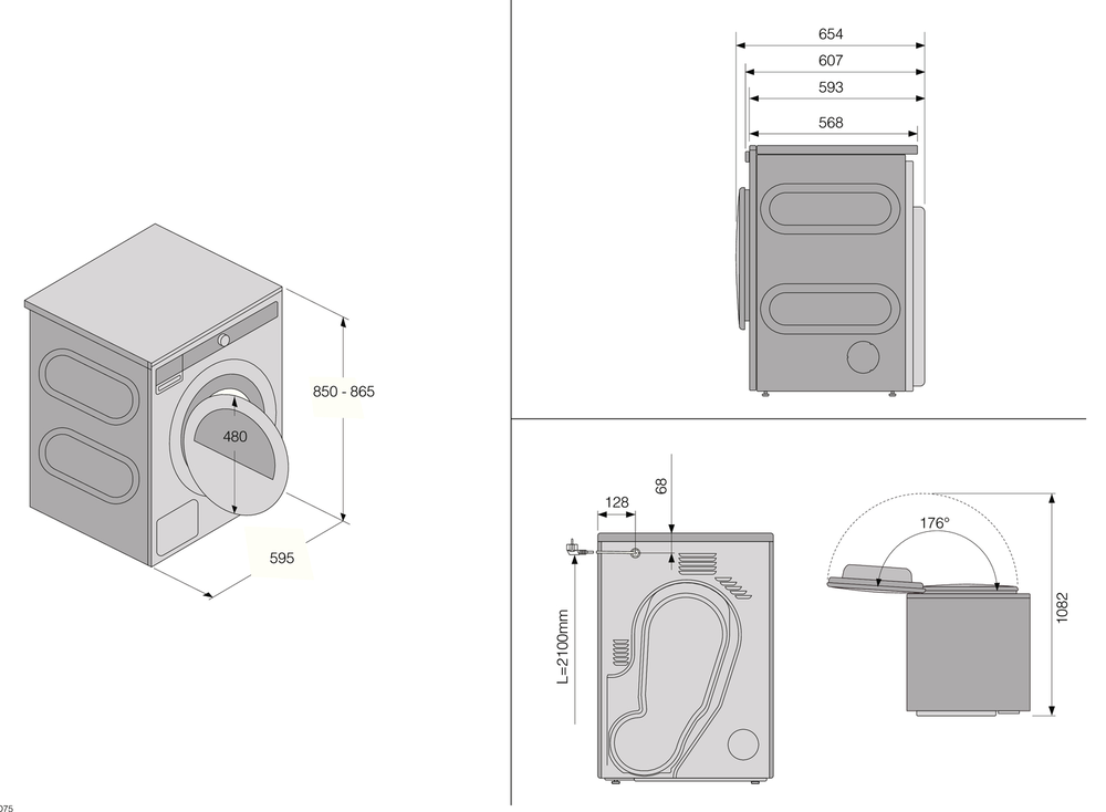 машина сушильная отдельностоящая, 8 кг, 59,5х65,4х85 см, титан