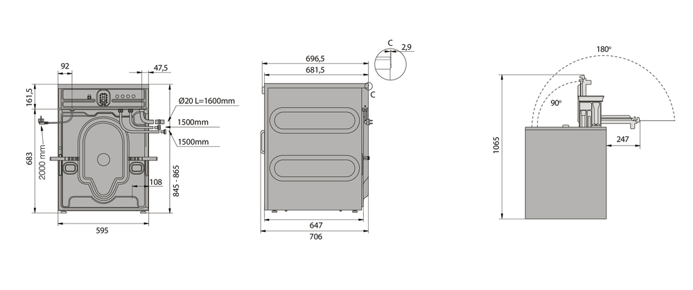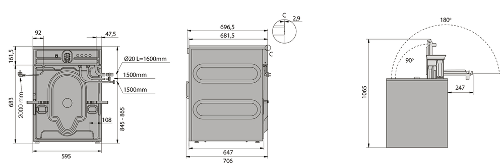 профессиональная стиральная машина с фронтальной загрузкой отдельностоящая, 1400 об/мин, 9 кг, 59,5х70,6х85 см, титан