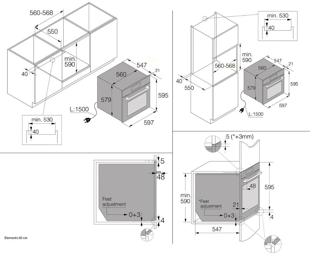 Ширина корпуса электроприбора. Особенно важно точно знать точную допустимую ширину для встраиваемой техники.
