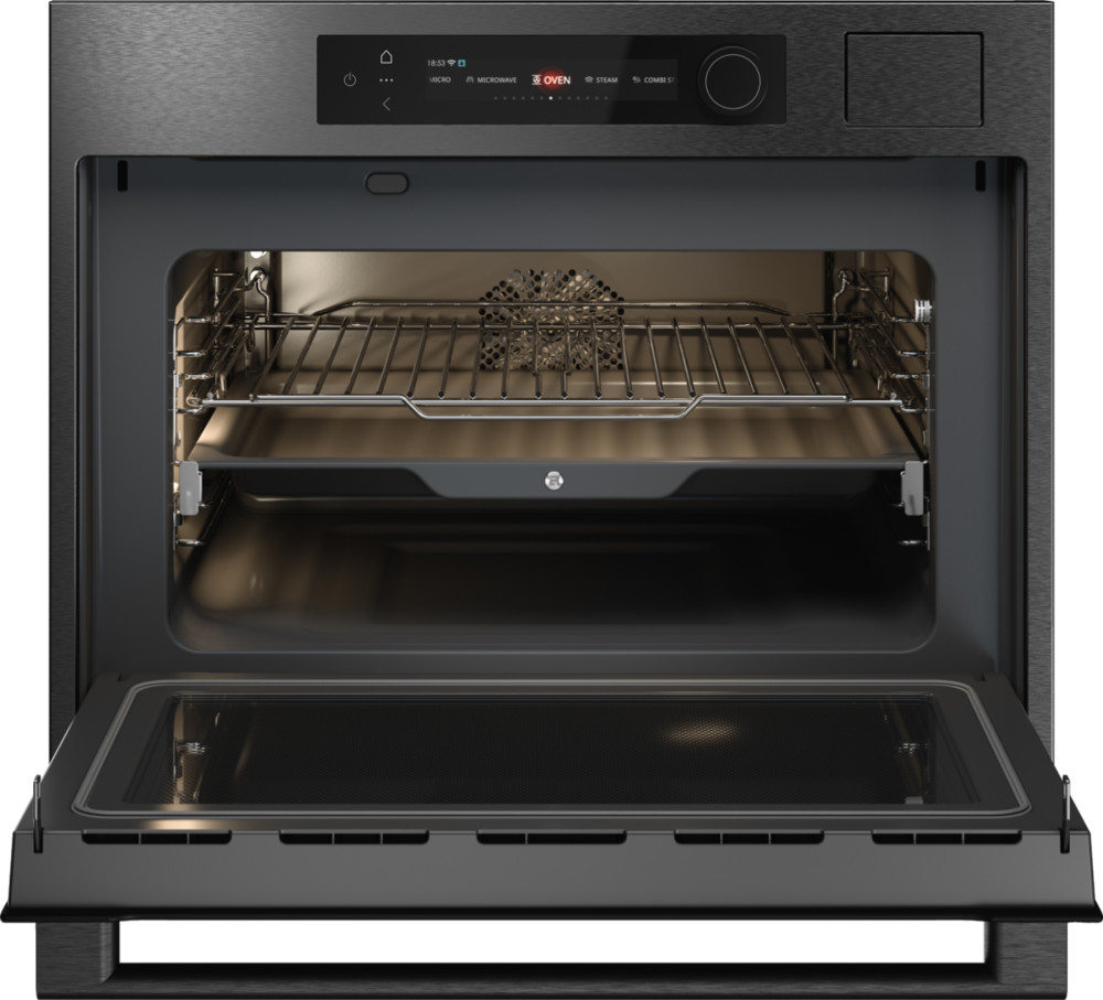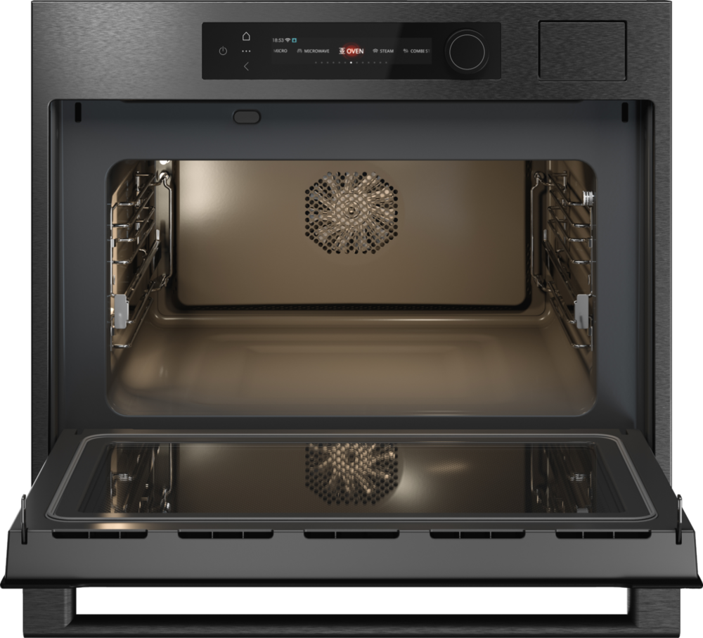 шкаф духовой электрический компактый с функцией СВЧ и пароварки, 60 см, черный