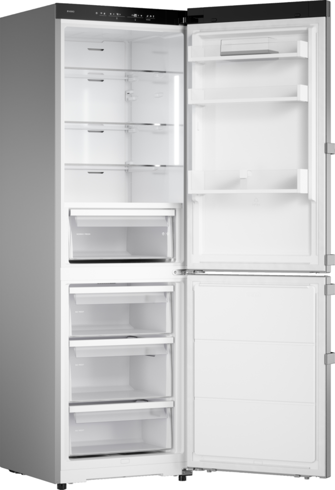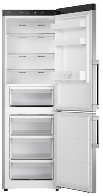холодильник-морозильник отдельностоящий, 306 л, класс энергопотребления А++, No Frost, 59,5x59,8x185 см, нержавеющая сталь