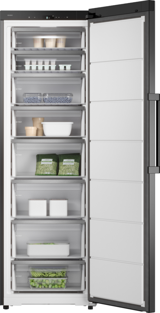 Отдельностоящий морозильник ASKO RFF586KNCB1 в цвете черной стали.