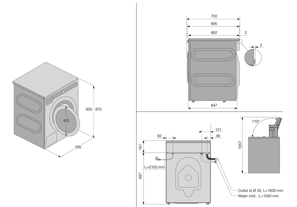- Высокая скорость отжима 1400 об/мин — максимальное удаление влаги для сокращения времени сушки