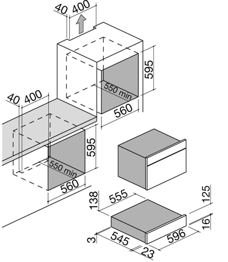 ящик для подогрева посуды встраиваемый, 59,6х56,7х14 см, черный