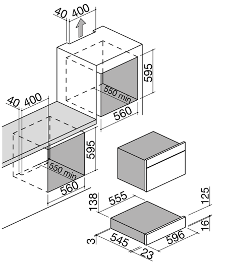 ящик для подогрева посуды встраиваемый, 59,6х56,8х14,1 см, нержавеющая сталь