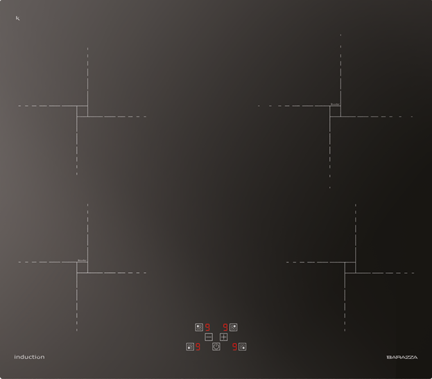 поверхность варочная стеклокерамическая индукционная, 60 см, черный, передний край скошенный