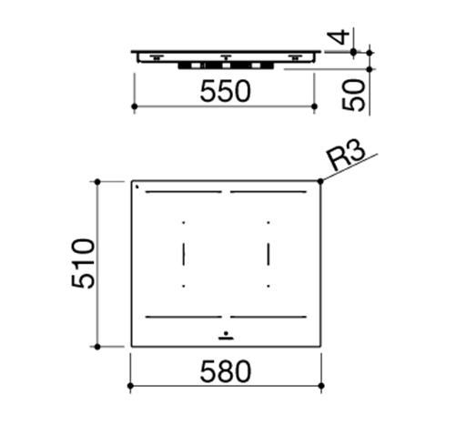 Характер огранки фаски на внешней стороне варочной панели. Металлические рамки предотвращают забивание монтажных швов крошками и пылью.
