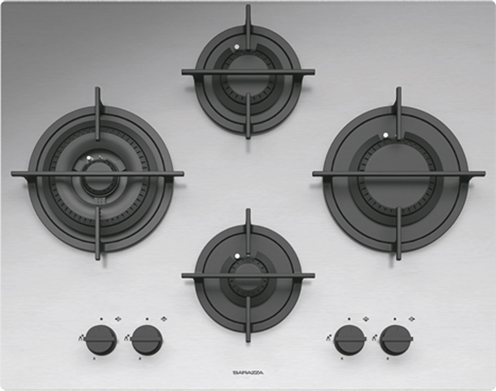 поверхность газовая, 65 см, газ на металле, 4 конфорки, решетки чугунные, нержавеющая сталь