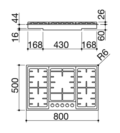 поверхность газовая, 80 см, газ на металле, 5 конфорок, решетки чугунные, нержавеющая сталь