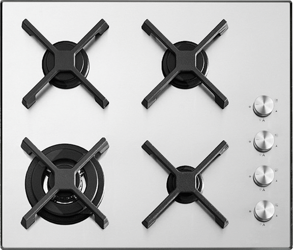 поверхность газовая, 60 см, газ на металле, 4 конфорки, решетки чугунные, нержавеющая сталь