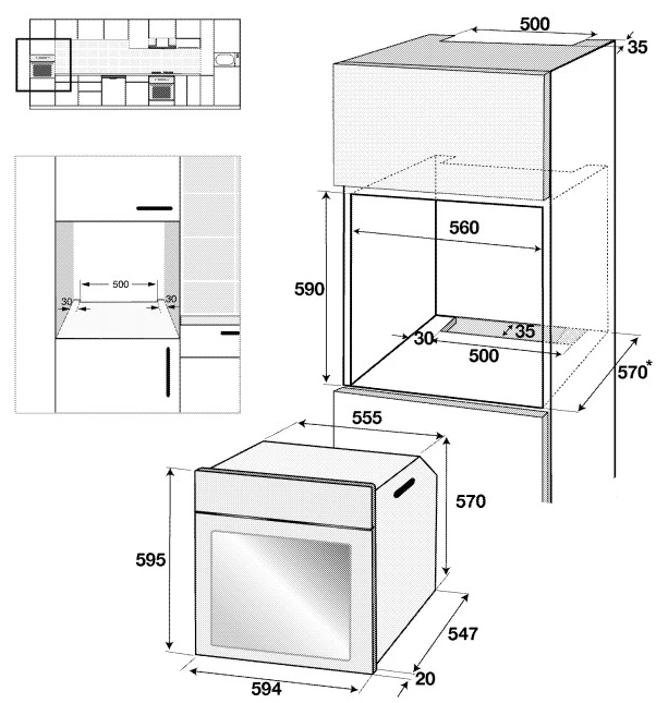 Ширина корпуса электроприбора. Особенно важно точно знать точную допустимую ширину для встраиваемой техники.