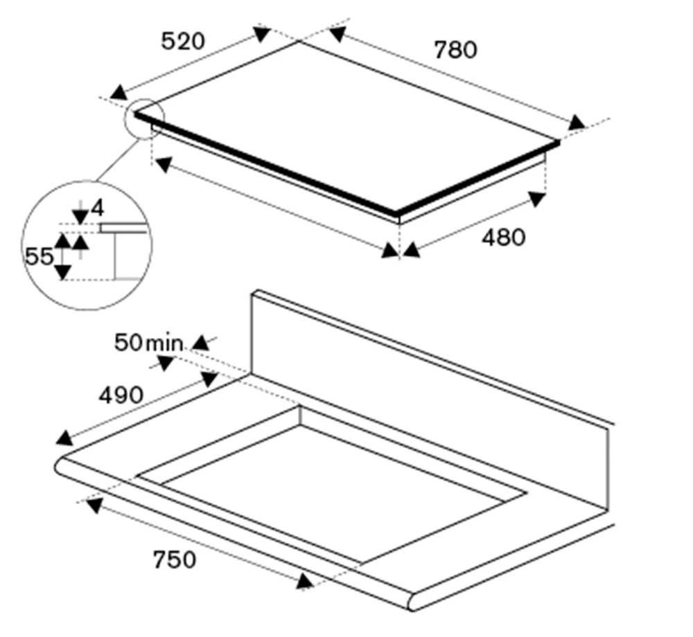 поверхность варочная стеклокерамическая независимая индукционная, 78 см, черный