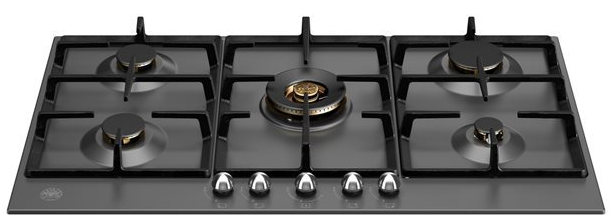 поверхность газовая независимая, 90 см, газ на эмали, 5 конфорок, решетки чугунные, черный матовый