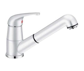 смеситель для кухни, латунь, поворотный выдвижной излив, белый
