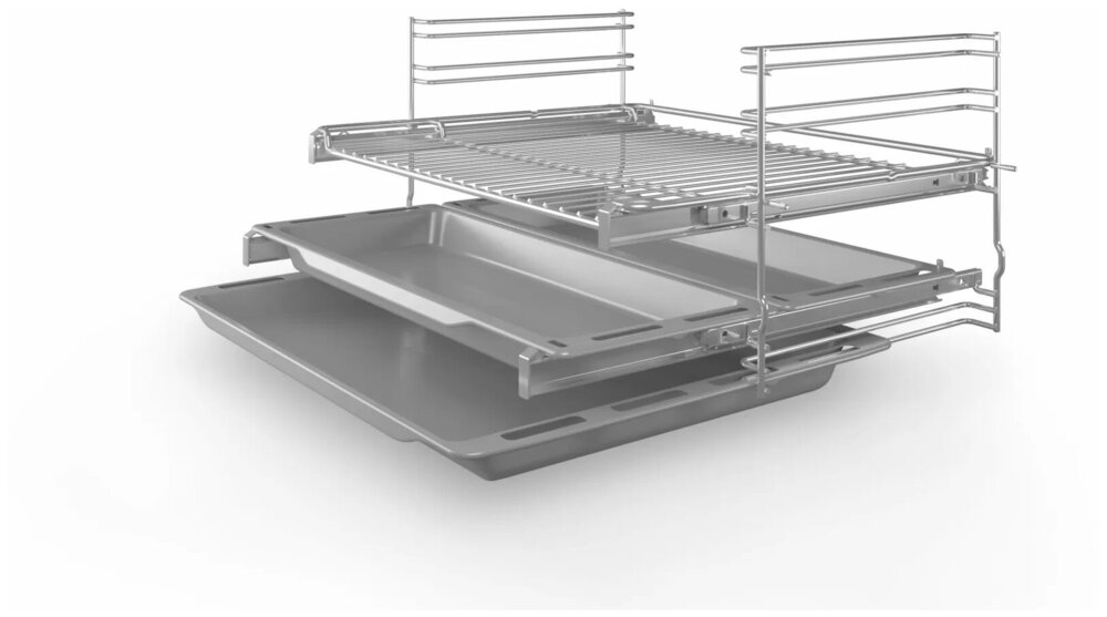 Выдвижные металлические полозья, которые легко выезжают за пределы камеры духовки вместе с противнем, не давая ему упасть.
