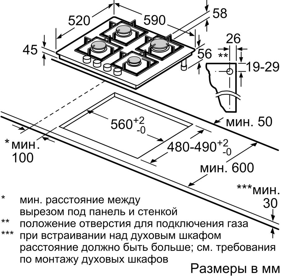 Ширина корпуса электроприбора. Особенно важно точно знать точную допустимую ширину для встраиваемой техники.