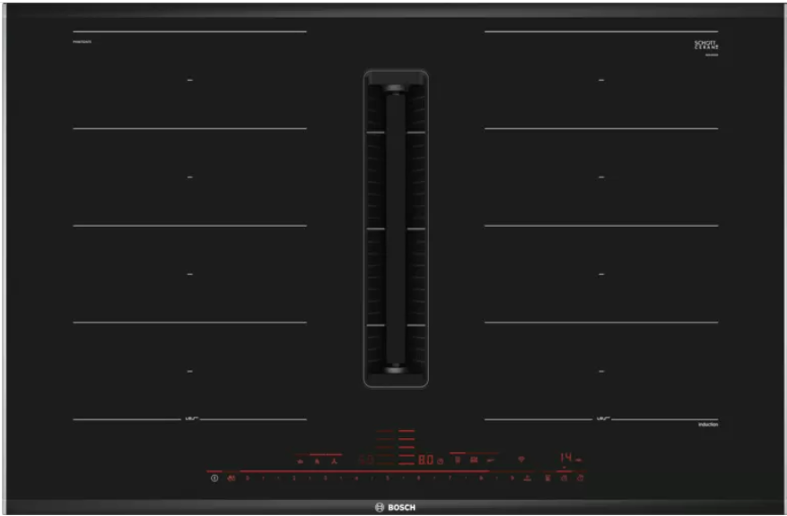 поверхность варочная стеклокерамическая индукционная с встроенной вытяжкой, 80 см, черный
