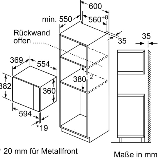 микроволновая печь встраиваемая, 25 л, 59x39x38 cм, черный
