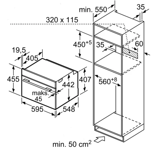 Ширина корпуса электроприбора. Особенно важно точно знать точную допустимую ширину для встраиваемой техники.